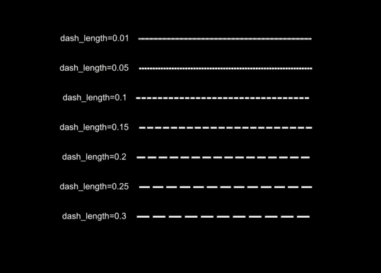 The distance between each dash in the dashed line is adjusted to dash_length. The default is 0.05 (= DEFAULT_DASH_LENGTH), and the larger this value is, the more dashes are created.