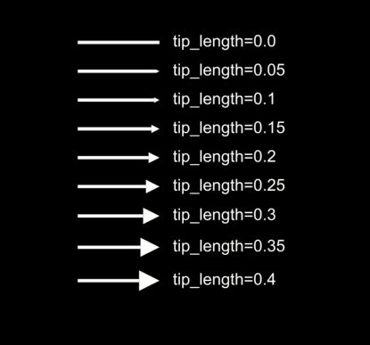 - tip_length: Determine the size of the arrowhead. DEFAULT_ARROW_TIP_LENGTH=0.35 by default