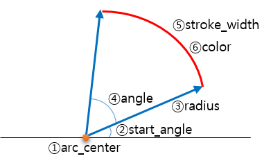 Start at 'start_angle' and make an arc equal to the angle. The base of the angle is 0 in the x-axis, the angle increases in the counterclockwise direction, and the unit is radians.