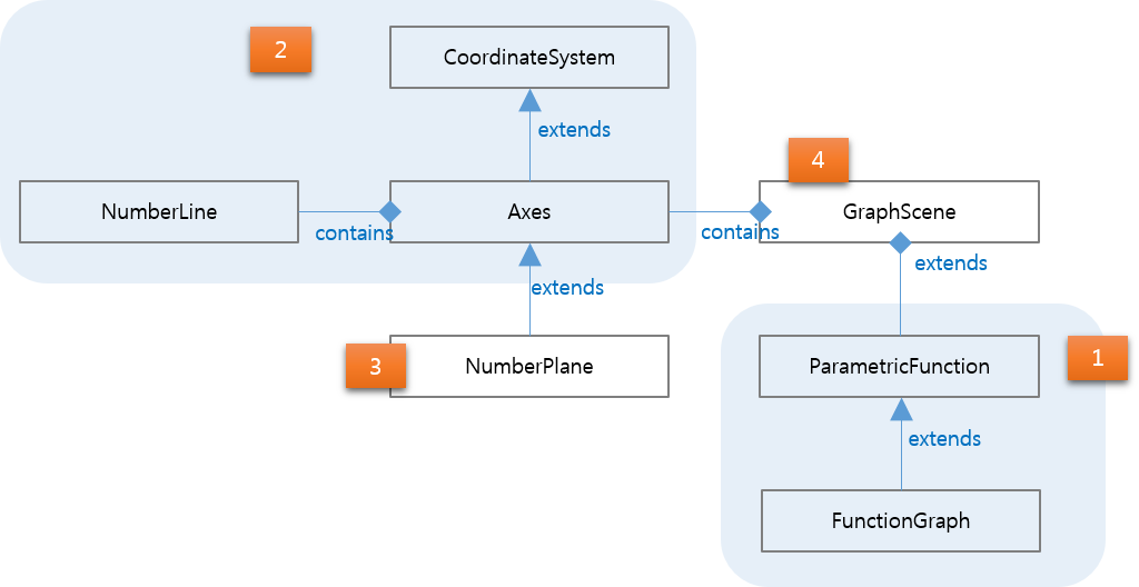 In the above structure diagram, I will explain the parts divided by numbers in order. If you read it as described, you can understand how to draw and animate graphs in Manim.
