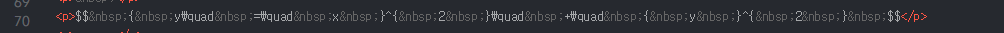 위에서처럼 HTML모드가 아닌 기본 모드에서 붙여 넣기 하고서 다시 HTML모드에서 보면 다음과 같은 형태가 됩니다. 그래서, 제대로 수식 출력이 안됩니다.