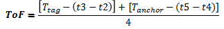 - 앵커에서, 태크와 앵커 사이의 이동 시간인 tof(Time of Flight)가 계산됨