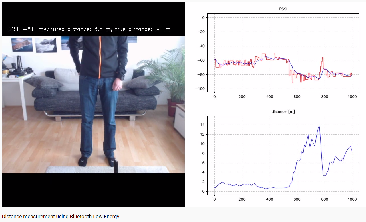 위 동영상에서 테스트한 바에 따르면 2m 떨어진 곳에서 가만히 서 있는 상태에서, 폰을 손에 쥐었다가 앞주머니에 넣거나 뒷 주머니에 넣는 동작만을 했을 때, 블루투스에 의해 측정된 거리를 보면, 14m까지 떨어져 있다고 보일 때도 있습니다. 오차가 무려 600%까지 발생한 것입니다.