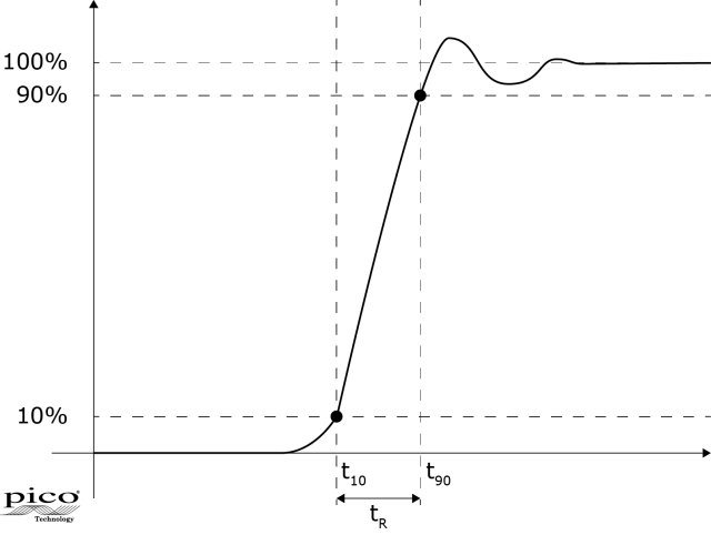 일반적으로 대역폭과 상승시간의 관계식은 $ {F}_{BW} = 0.35/T_{r}$입니다.