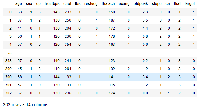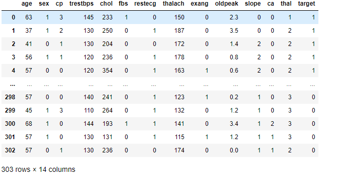 - 최종 완성된 DataFrame의 칼럼: age, trestbps, chol, thalach, oldpeak, target