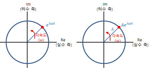 반지름이 $A$이면서 각속도가 $\omega$이면 $Ae^{i\omega t}$가 된다.