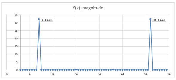 Y[0]~G[63]에 대해 크기에 대한 그래프를 보면 Y[8]과 Y[56]에서 가장 큰 값을 가진다.