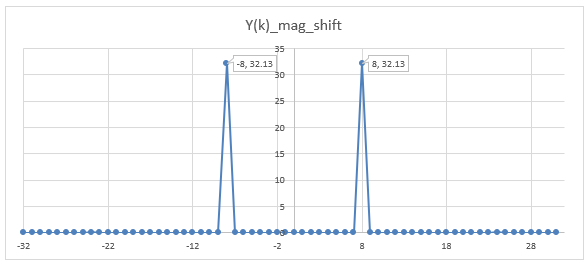 따라서, Y[k]값에서 Y[1~32]의 값은 Y[63~32]의 값과 같다. 해서, 위 [그래프 1]을 k=0~63까지가 아닌 -32~32까지로 나타내기도 한다.