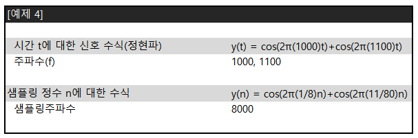 - 신호 수식: 1 kHz와 1.1kHz의 정현파가 합쳐진 신호 --> $\cos{2\pi \cdot 1000t} + \cos{2\pi \cdot 1100t}$