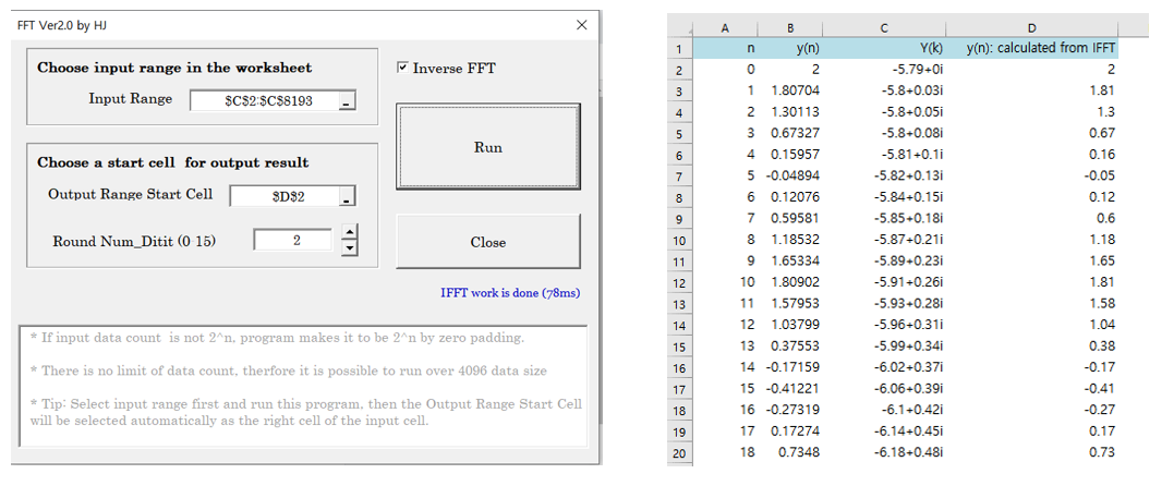 Call IFFT(inputRange, outputRangeStart, RoundTextBox)