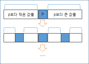 1. 어떤 기준점 p를 중심으로해서 왼 편에는 p보다 작은 값을, 오른 편은 큰 값이 되게한다.